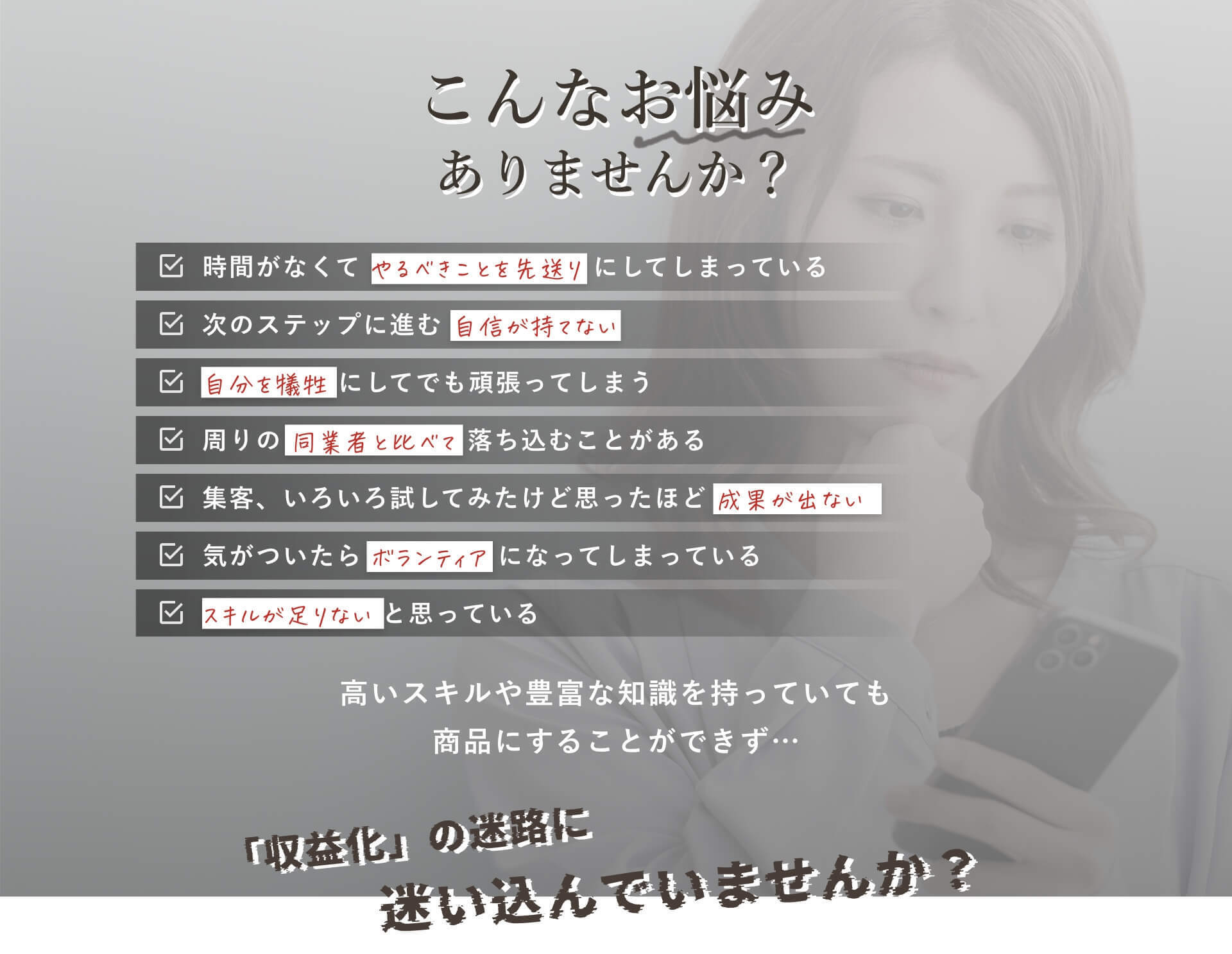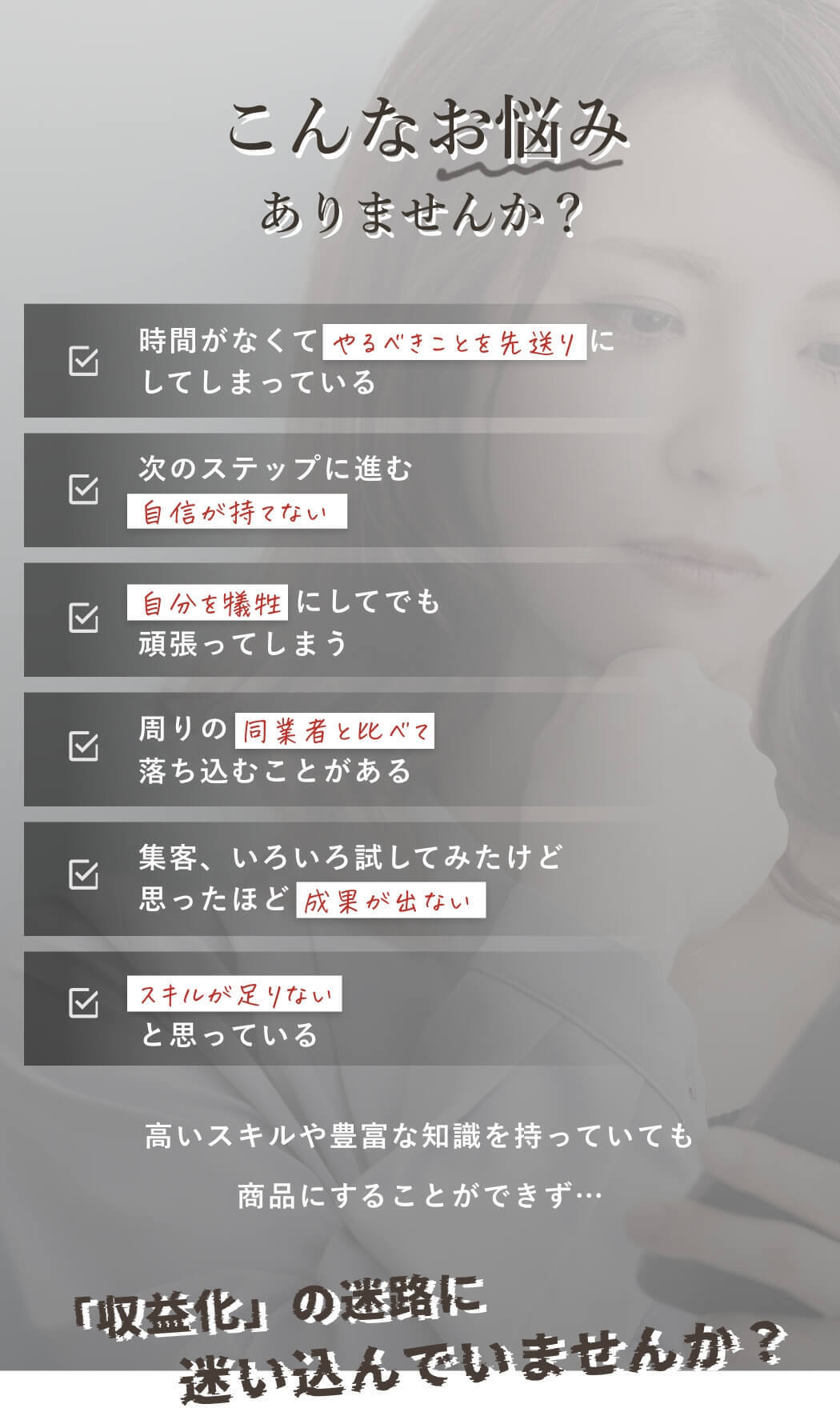 ビジネスが安定し軌道に乗るまで、伴走者がいてくださることの大切さを痛感しました。情報があふれる昨今、サポートのおかげで思考の迷子に陥ることなく突き抜けることができました。ありがとうございました!