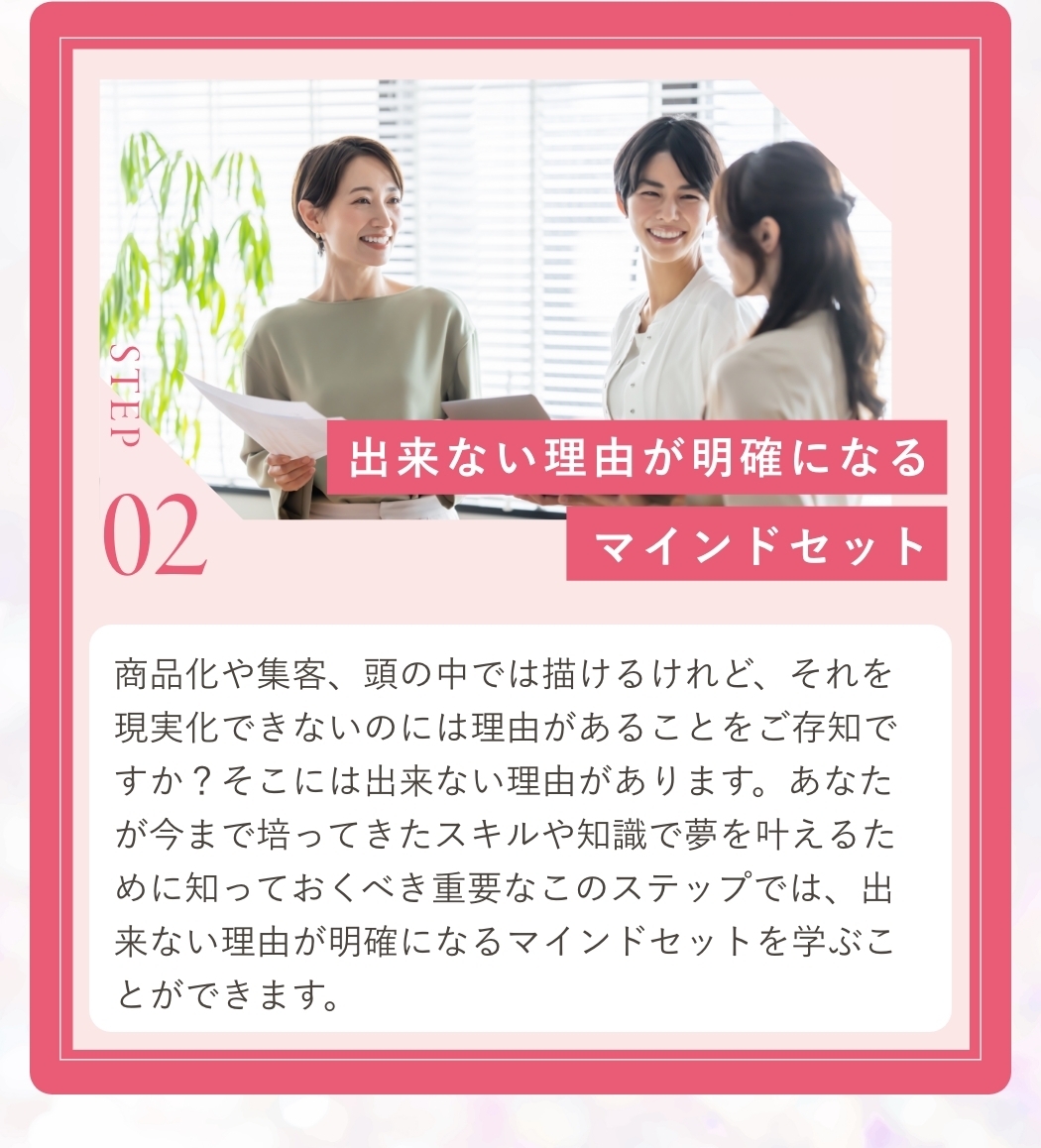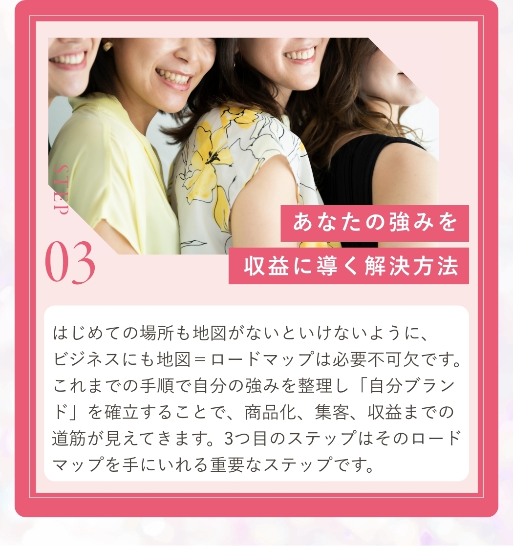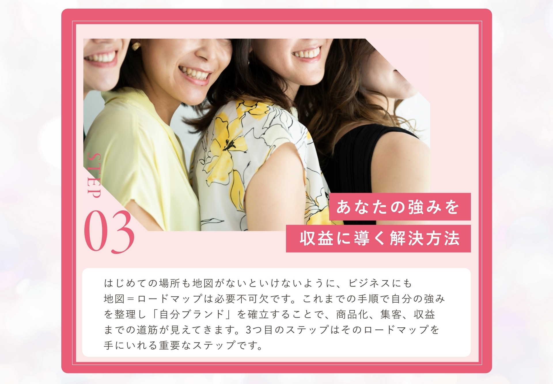その経験を活かし、『女性が輝くビジネス』をサポートすることで、稼げる女性リーダーを増やすために、この講座を立ち上げた。